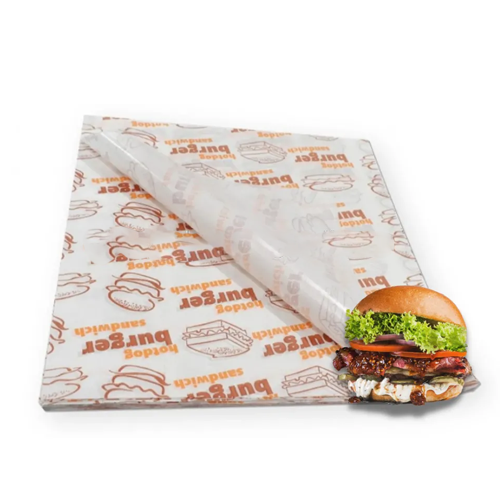 Durable and food-safe wrappers available in Paper Foil or Paper PE, designed to keep burgers fresh while presenting your brand with high-quality print.
